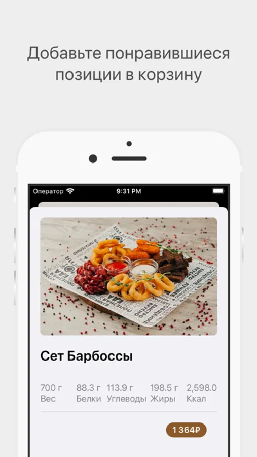 Как сделать заказ в приложении “Пиратская Бухта”: выберите понравившиеся позиции из меню, добавьте их в корзину и перейдите на экран оформления заказа (по нажатию на иконку корзины).