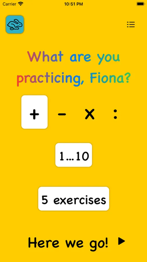 Start a quick math exercise within seconds with a clutter free and intuitive interface.