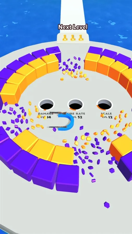 Destroy enemy cubes, collect them and use broken cubes to upgrade your picker power.