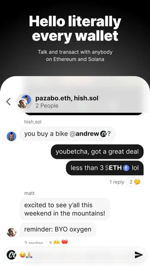 Talk and transact with anybody on Ethereum and Solana