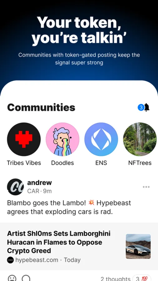 Tribes is your web3 messenger, from DMs to DAOs. Chat and transact, get involved in your web3 communities, and view rich wallet profiles.