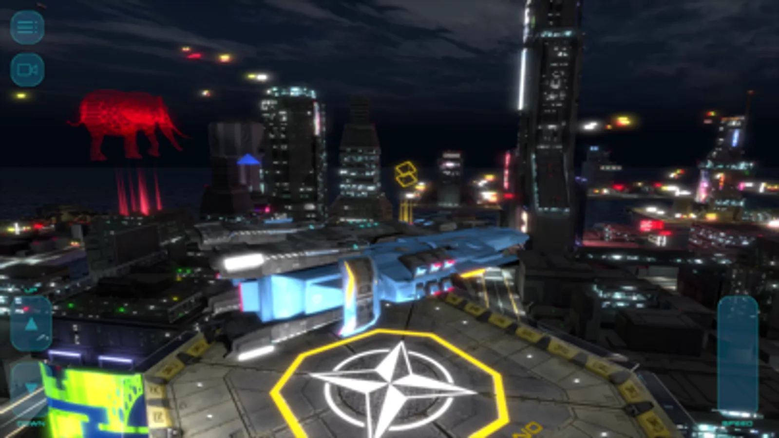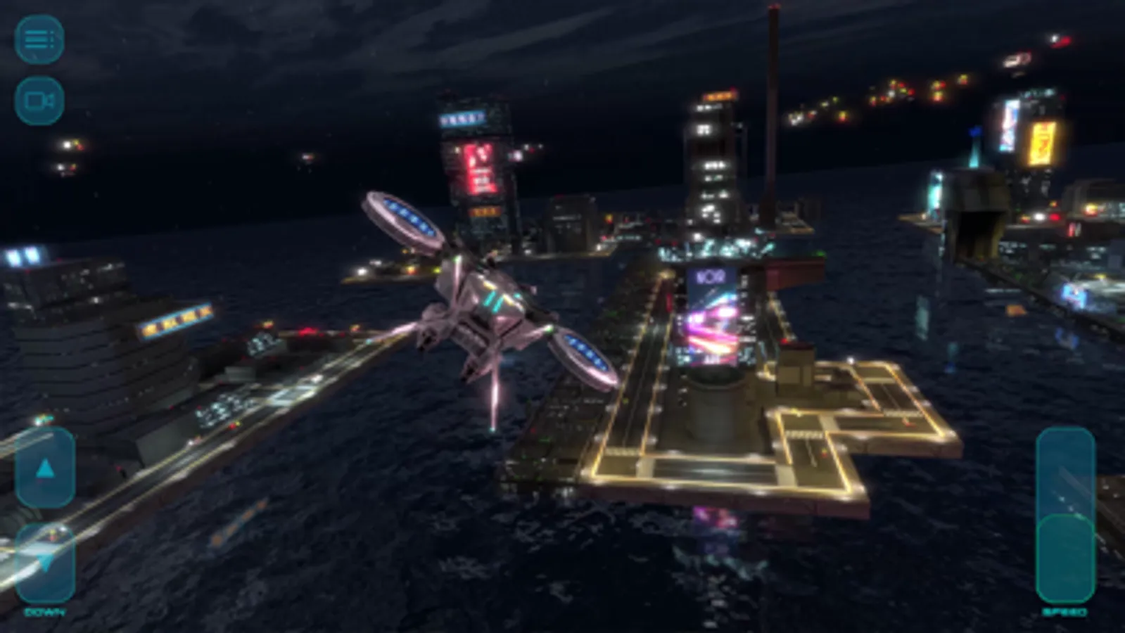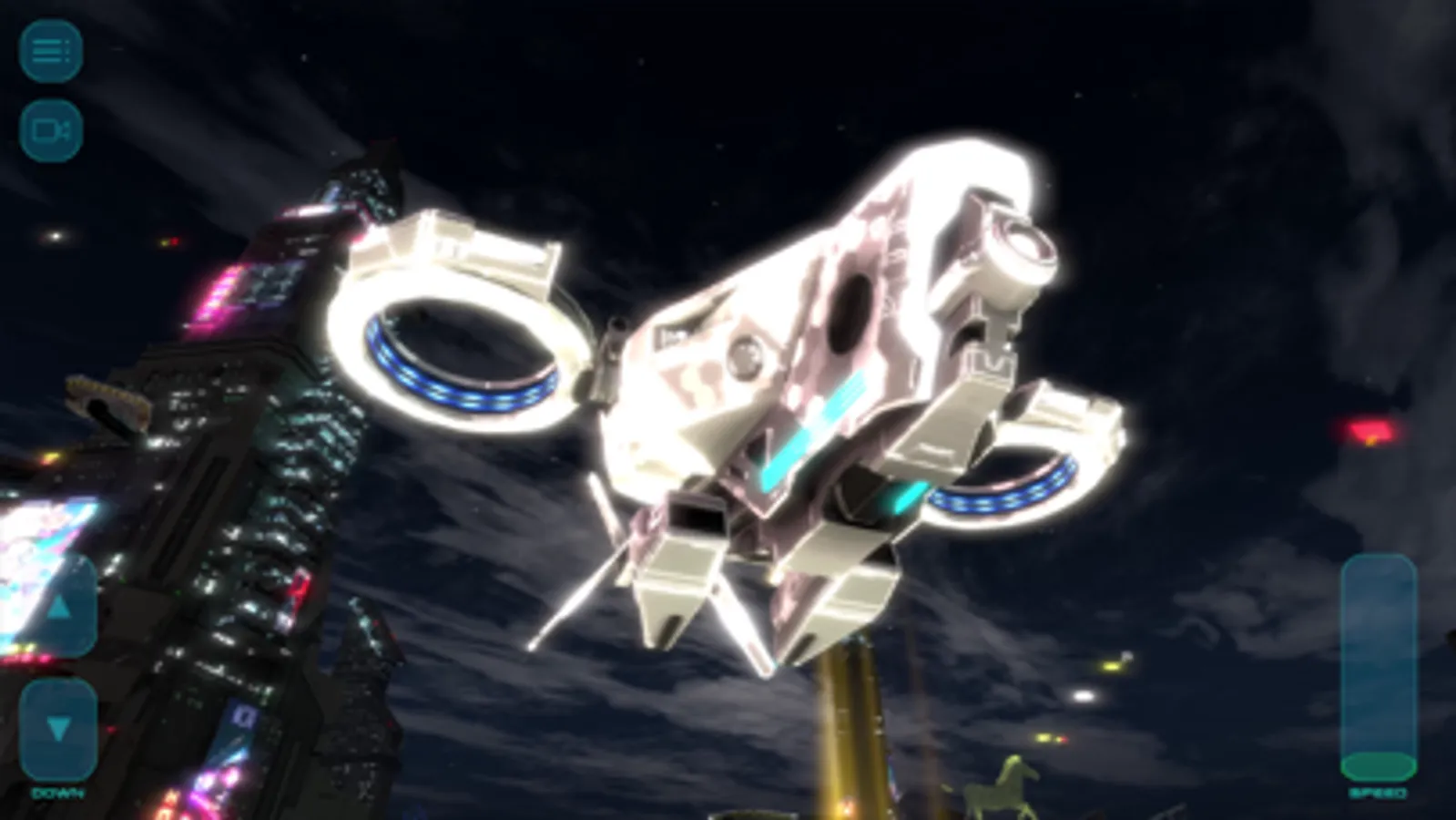 The environment simulates a city 200 years from now. With flying cars, spaceships, or drones, as sentries supervising and maintaining order in the place.