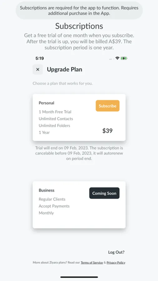 Subscriptions are sold separately; can be bought with in-app purchases as the app requires additional purchase.