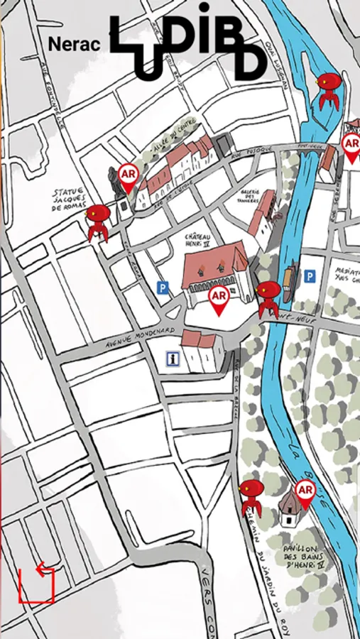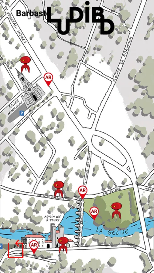 - Sur la carte, repérez les lieux identifiés avec une icône AR.