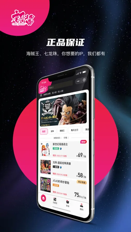 初酱是一款线上销售一番赏等潮玩商品的综合平台,主要经营万代官方授权一番赏、盲盒、众多IP手办雕像及潮玩商品,以多元智能化协助用户完成多方面消费需求,开辟的全新电商动态交互模式,带给用户全新的购物体验。
