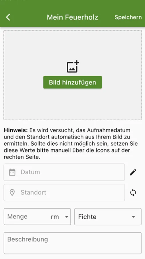 - Fotofunktion mit Angaben zu Standort, Menge und Datum