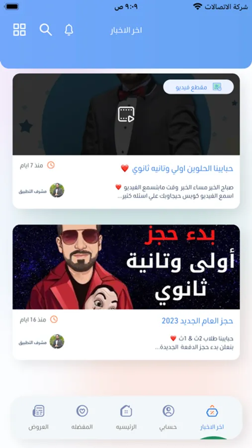 جزء الاخبار هينزلك فيه مواعيد الحصص والبرومو الخاص بكل حصة .