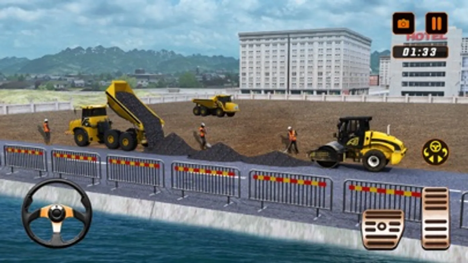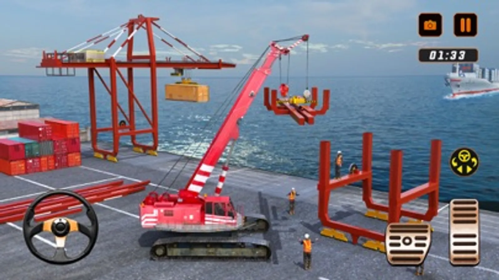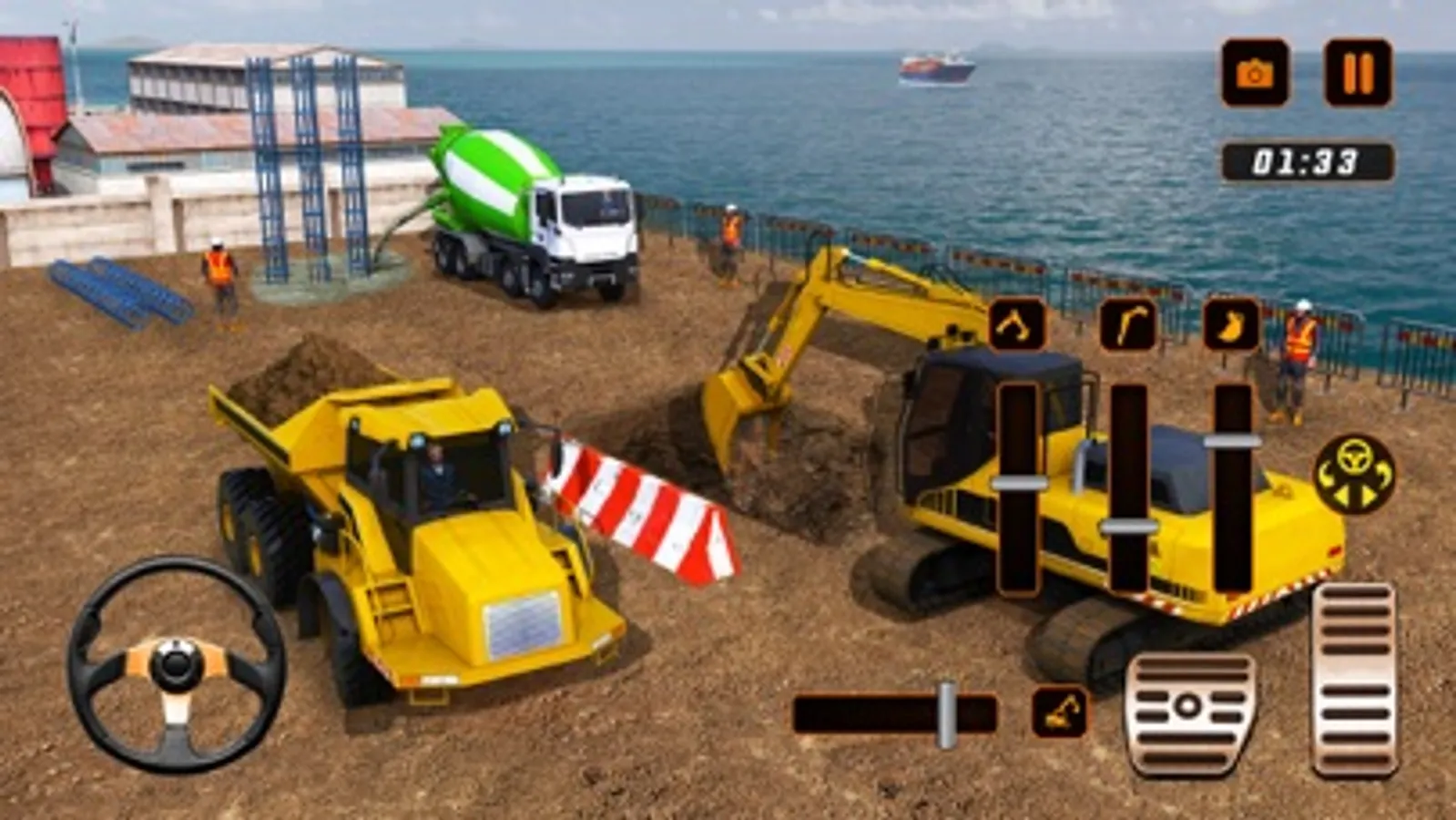 You have to drive various vehicles like excavators and cut the trees down with its blades, once all the trees are down you have to dig for pillars and each level goes on like that with continuation until the port is built. You will have various tasks like transporting the iron required to build the port and all other required stuff.