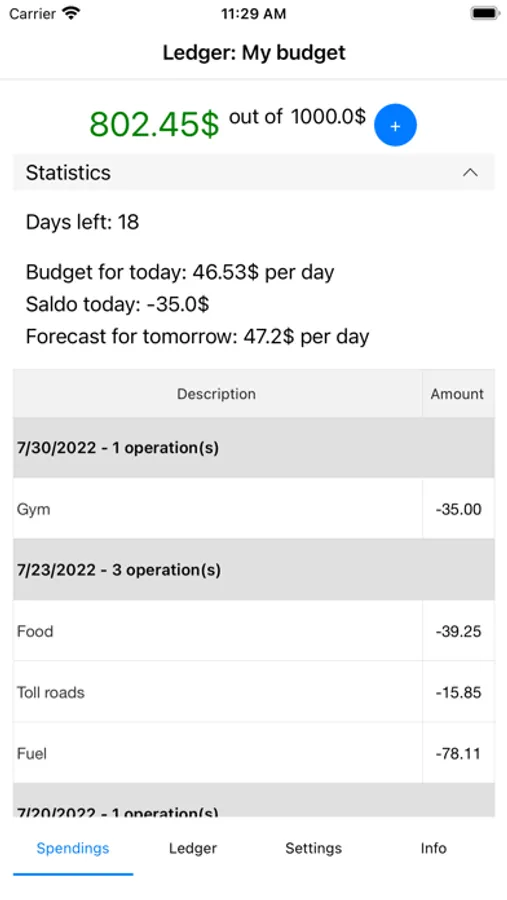 This app is under continuous development so new features like spending statistics, allowing to pre-set future spendings that you are aware of and predict (for example, periodic spendings like utility bills, loans etc.). However, since this app is being developed by a single person it may take a bit time.