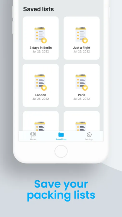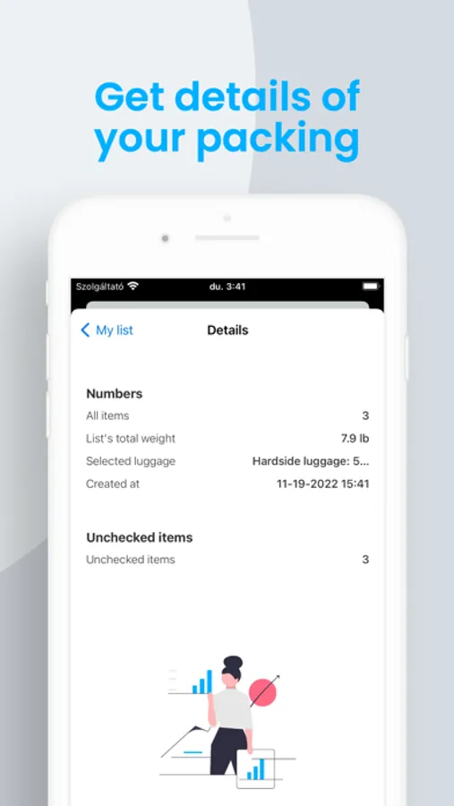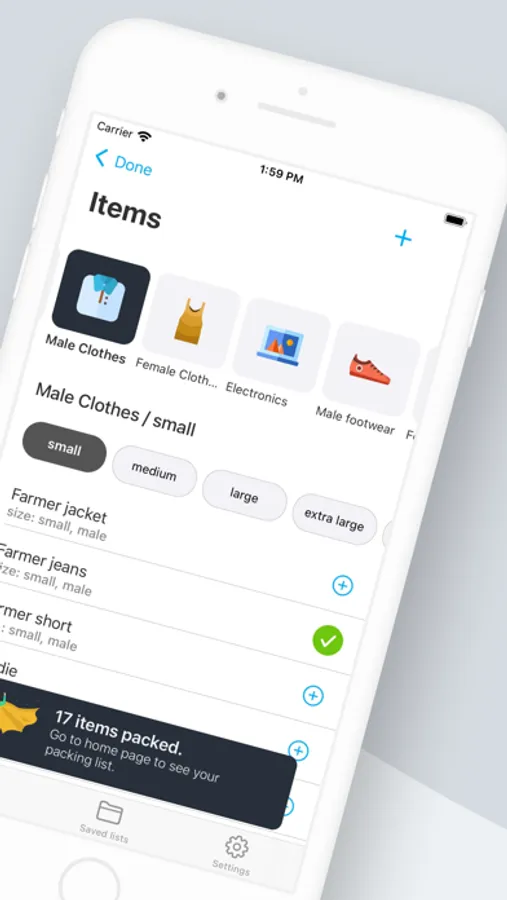• Select your luggage and fill it with items from our preconfigured list in no time