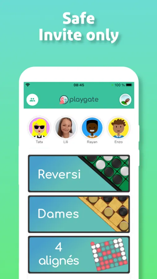 Far from the existing social messaging applications, PlayGate creates a safe and healthy environment to introduce your children to technology. Contacts must be invited and approved as profiles are not searchable.