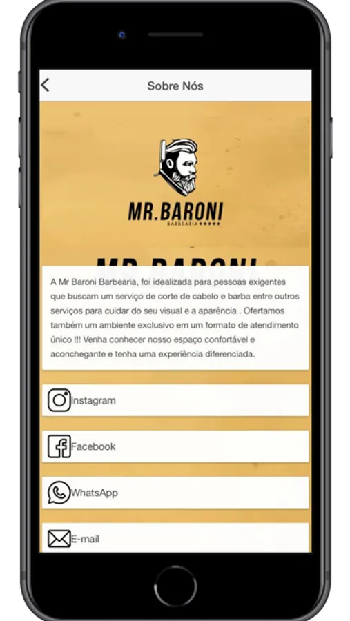 A Mr Baroni Barbearia, foi idealizada para pessoas exigentes que buscam um serviço de corte de cabelo e barba entre outros serviços para cuidar do seu visual e a aparência . Ofertamos também um ambiente exclusivo em um formato de atendimento único !!! Venha conhecer nosso espaço confortável e aconchegante e tenha uma experiência diferenciada.