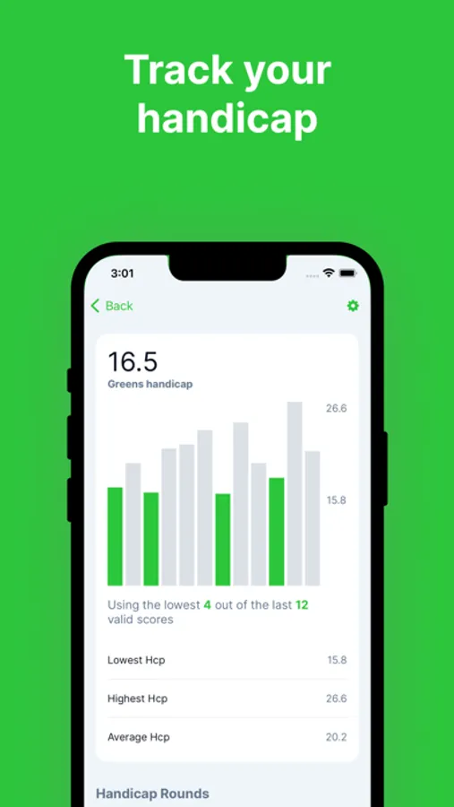 - Automatic Handicap Calculation: Stay up-to-date with your skill level as Greens automatically updates your handicap with each submitted round.