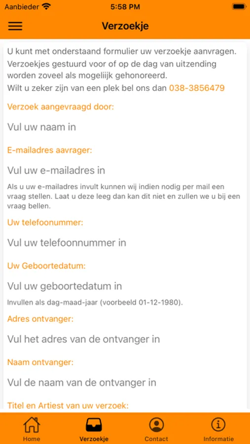 In de app kunt u verzoekje aanvragen.