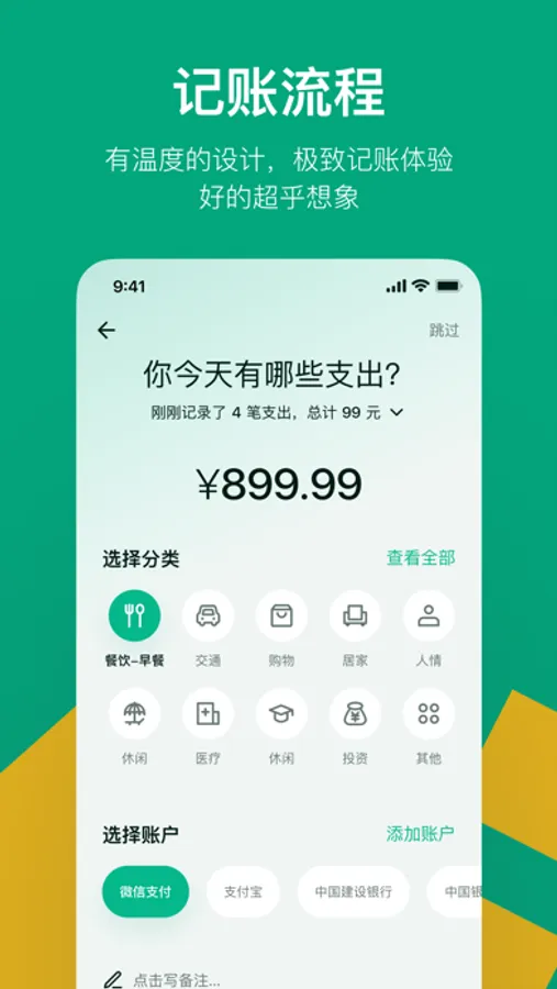 -- 记账流程,有温度的设计,极致记账体验,好的超乎想象;
