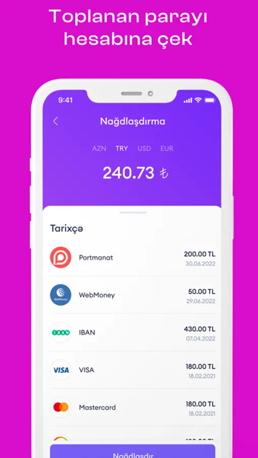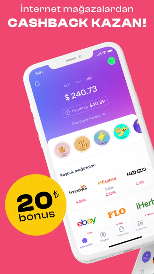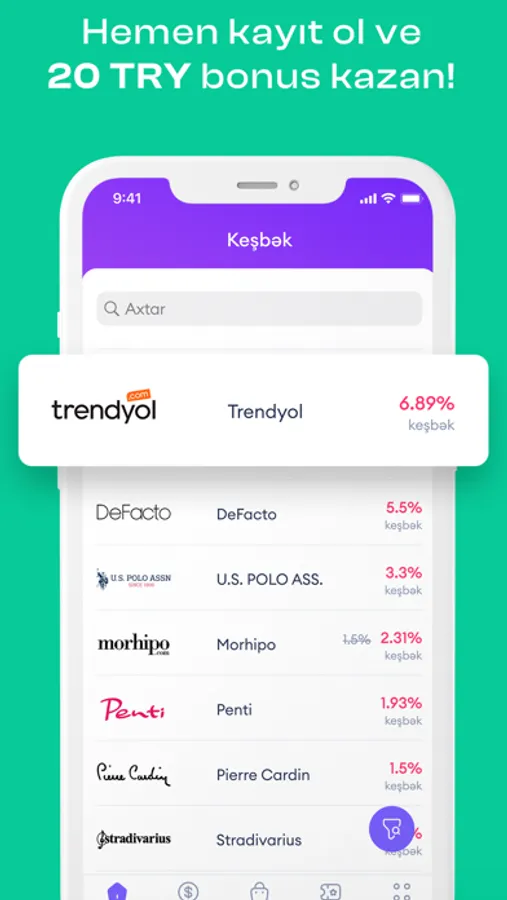 Geyim, səyahət, elektronika, əyləncə və digər kateqoriyalardan alış-veriş edərək qazanın.
