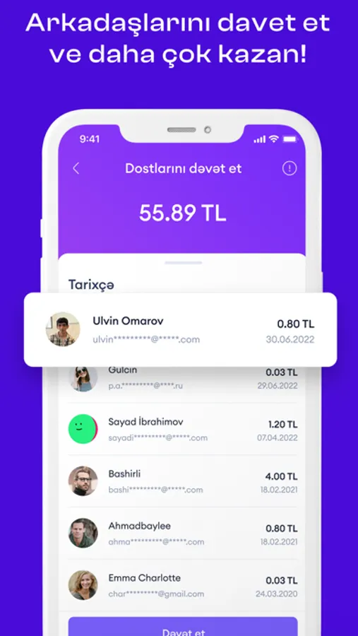 ARKADAŞLARINIZI DAVET EDİN, onlar 20 TL bonus, sizse onların her alışından %5 ekstra cashback kazanın!