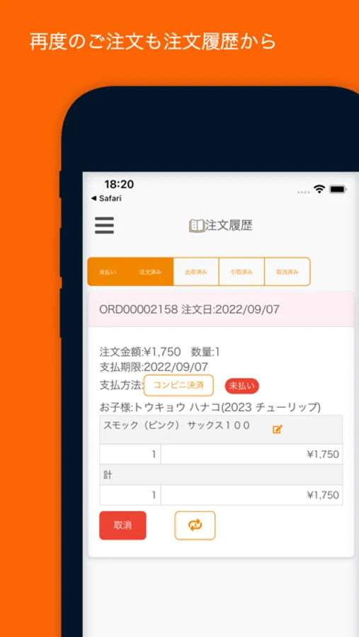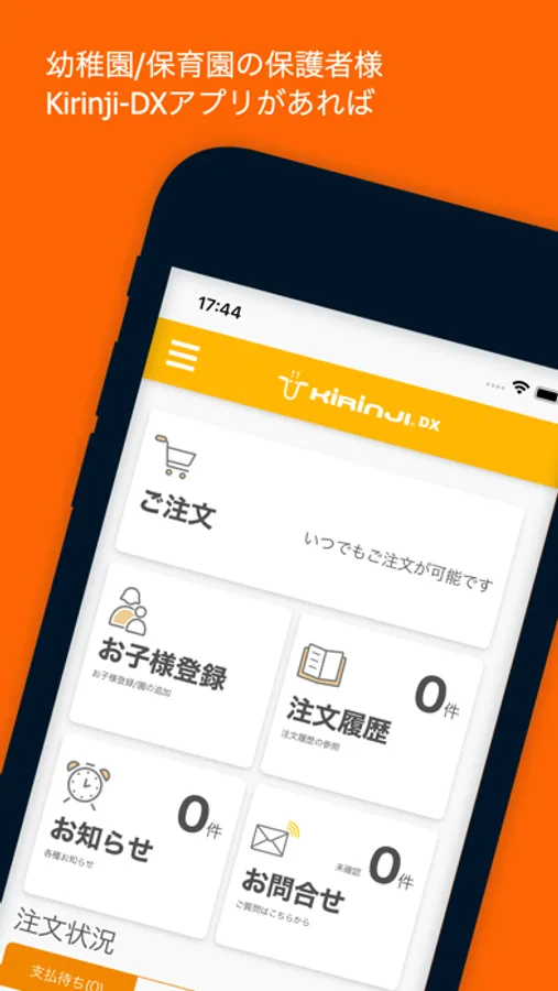 Kirinji-DXは、幼稚園/保育園の制服/体操服などの各種の商品を保護者様が簡単にご注文できるアプリです。通園されている幼稚園/保育園様と一緒にご利用可能です。