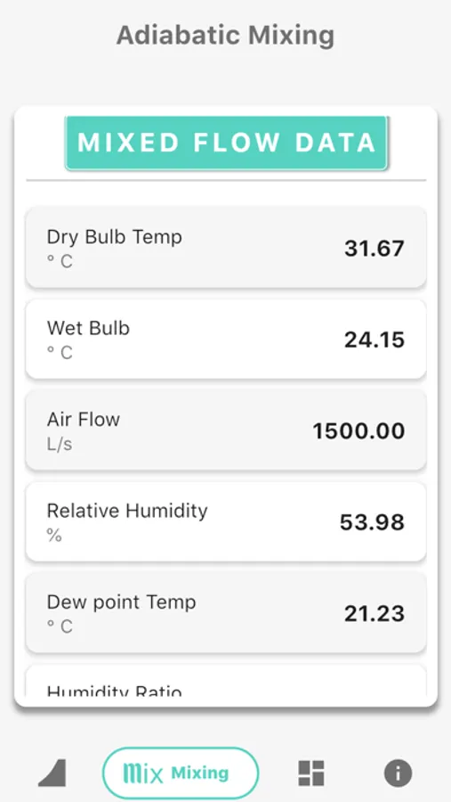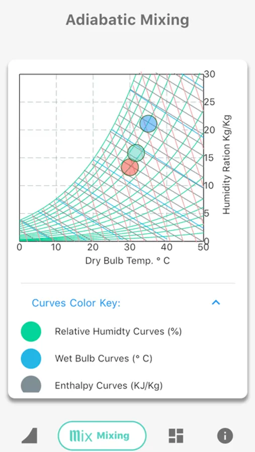 Psychrometric Pro will allow the user to calculated the adiabatic mixing air properties easily.