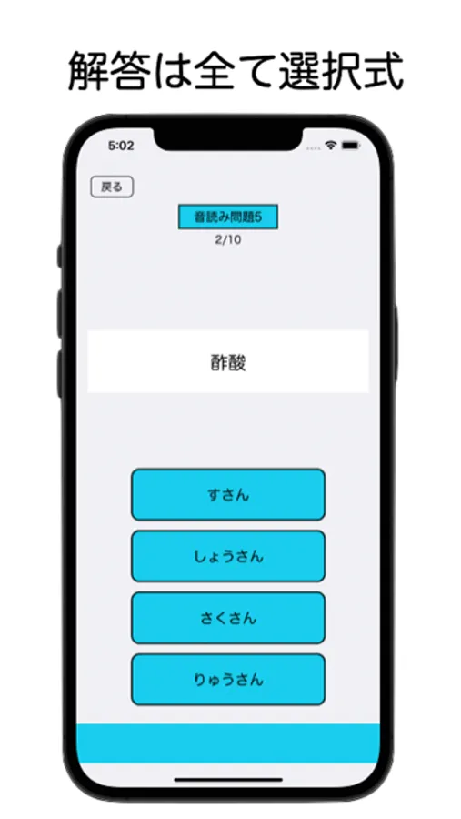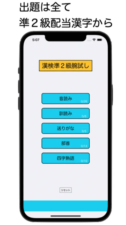 漢字検定3級配当漢字の中から、読み280問・送りがな70問・部首100問・四字熟語140問の全590問です。解答は全て選択式でサクサク進められます。