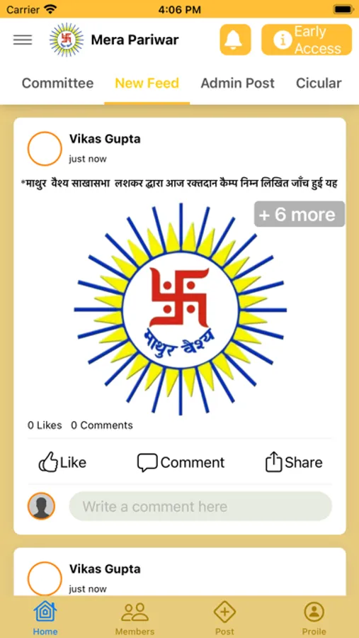 The MeraPariwar app does more than help you stay connected with your friend’s relatives of a community and interests. It's also your community organizer for storing, saving and sharing photos details of events and live videos on social channels