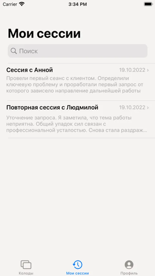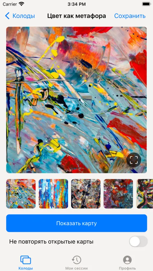 - возможность сохранять выбранные карты с указанием названия и описания проведенной сессии (доступно только при регистрации).