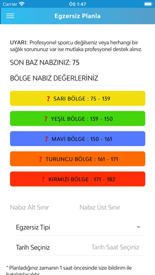 Basit üyelik sistemi ile kendi Bluetooth nabız cihazlarınızı kullanarak evinizde egzersiz yapabilirsiniz. Ölçüm bilgilerinizi ve dinlenik nabzınızı girerek egzersiz anında doğru nabız değerlerinizi takip edebilir ve en verimli sonucu alabilirsiniz.