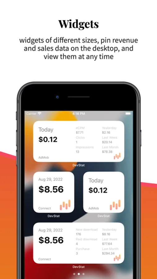- Desktop widgets: Support widgets of different sizes, pin revenue and sales data on the desktop, and view them at any time.