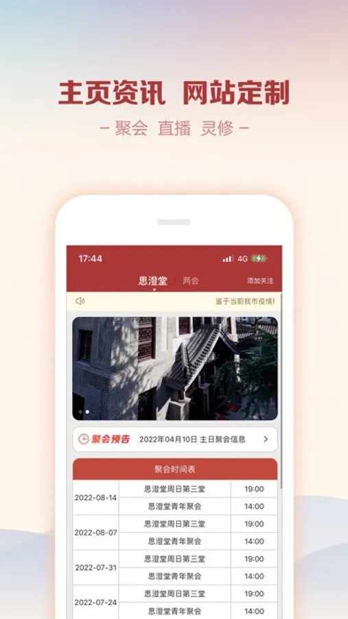 杭州教会包含杭州市基督教协会的官方咨询和其区域内教堂的咨询信息发布。以及合法合规的视频服务、聚会预约服务等。
