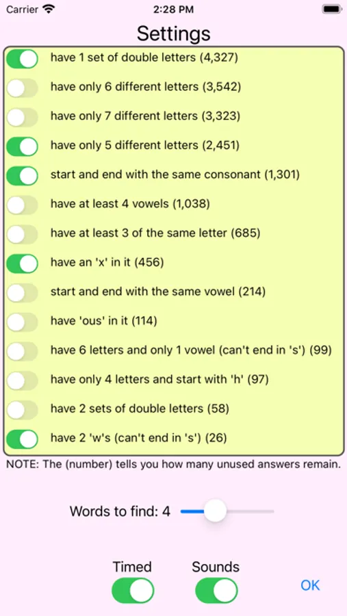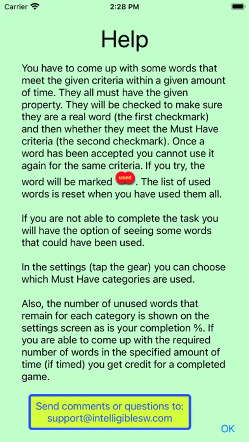 Come up with words that meet the requirements. The more you play, the harder it gets because you can't use the same word more than once in a category. You can decide what the requirements are. It can be timed or not.