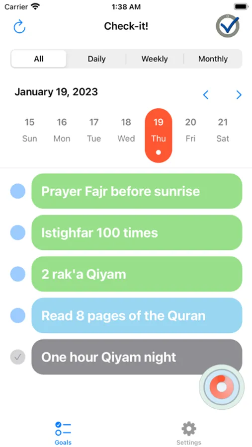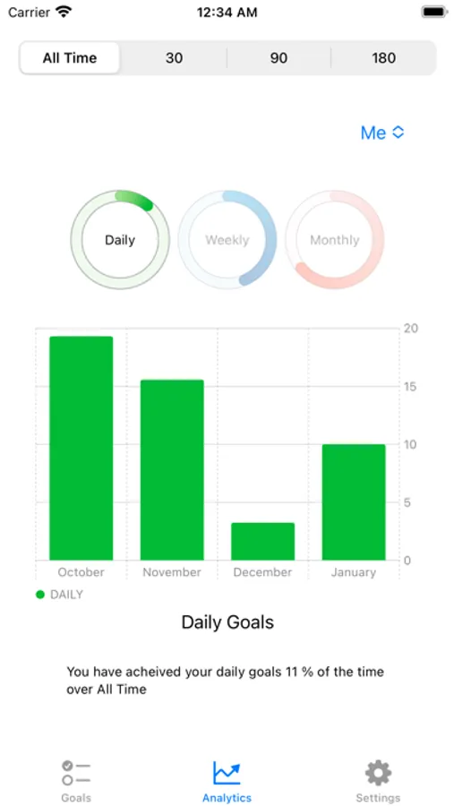 - Different types of goals: daily, weekly, and monthly goals for better tracking