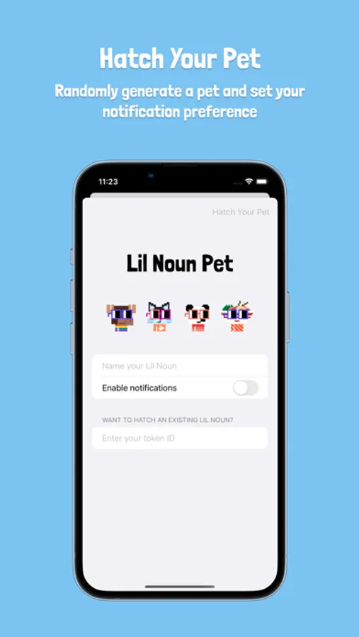 Prevent your Lil Noun’s slow march toward doom by providing it with food and water. Think Tamagotchi, but with Lil Nouns CC0 artwork! Each Lil Noun is randomly generated based on a large set of traits when the pet is hatched. Your pet’s appearance reflects its current state. If your pet is asleep, its eyes will be closed. If your pet dies, its eyes will be crossed out, etc.