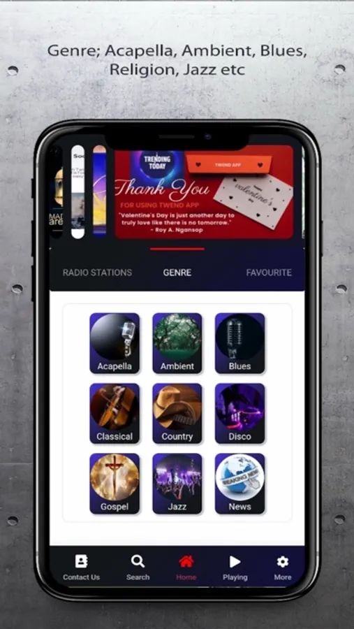 Twend App helps discover Radio stations across the globe (that have made their streams available on radio-browser for public use) and categorises the Genre (Acapella,Ambient, Blues, Classicals, Gospel, Islamic, Rock, Pop, Rap, Reggae, Soul, News, Sports and many more) for quick search. Radio-stations submitted are being reviewed to give you the best listening experience. Audio continues to play even on background when your phone goes to sleep.