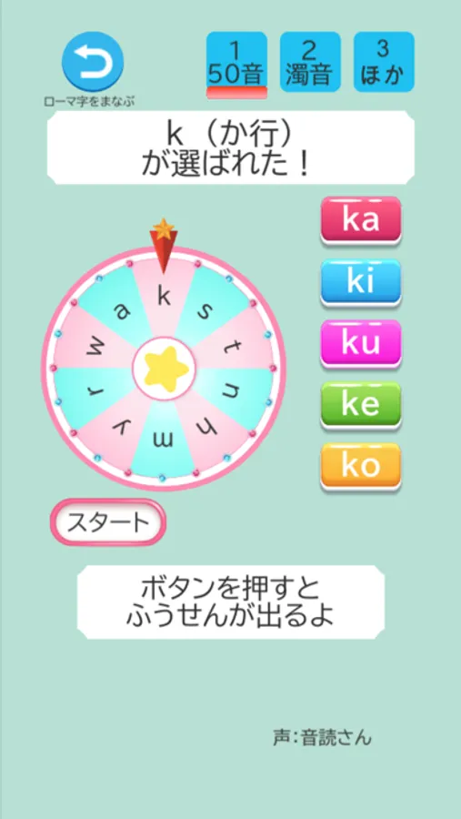 ルーレットやローマ字表でローマ字をおぼえましょう。