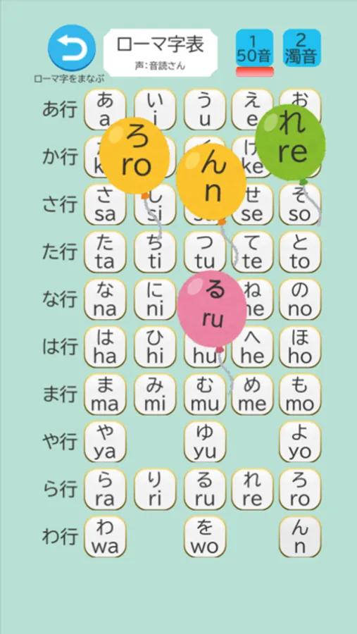 ローマ字表 選んだローマ字のバルーンが作れます。