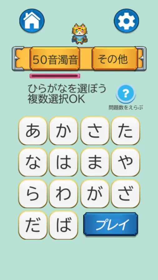 出題数は10問、15問、20問、選んだひらがな分と4種類選択することができます。