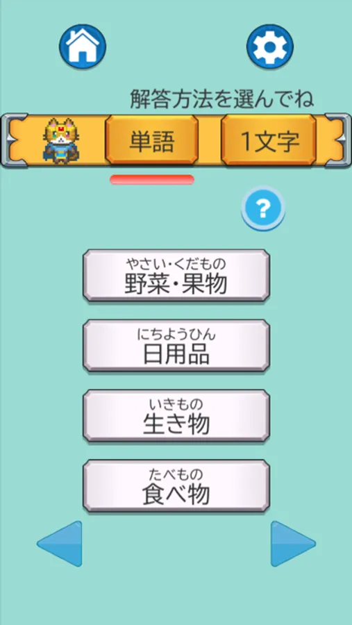 1文字ははタイピングの様にひらがな1文字ずつ解答します。