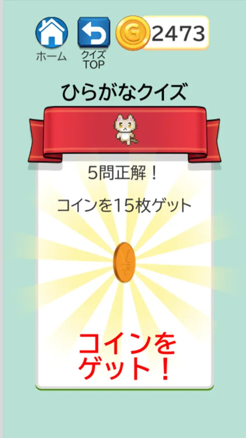 正解してもらえるコインでネコキャラやアイテムを集められます。