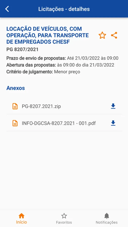 - Opção de favoritar a Compra para receber notificações da inclusão de novos anexos;