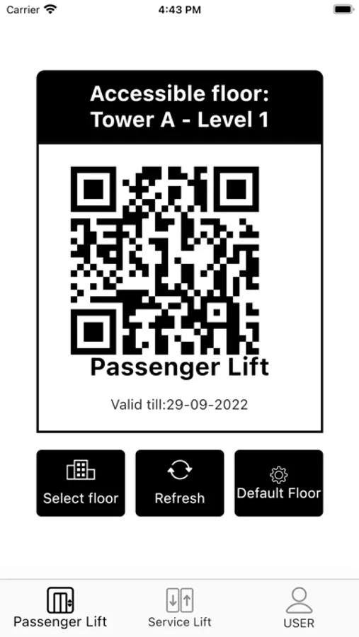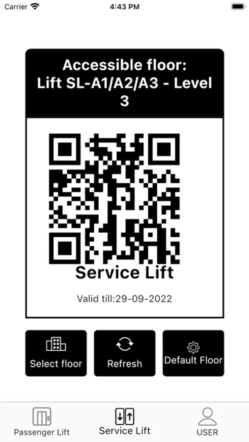 Users can select the target floor on the app interface and generate a QR code with the information of the target floor. After swiping the code, the registration system on the target floor will send elevators to the user.