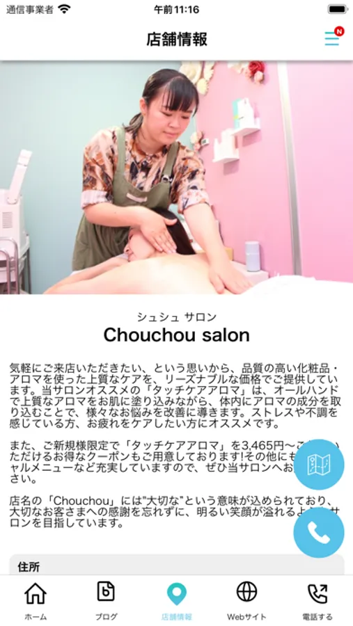 店舗のマップが表示され、地図アプリとも連携しているので、初めてのご来店の時も簡単に見つけることができます。