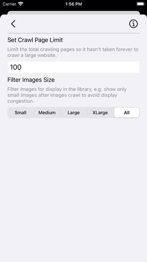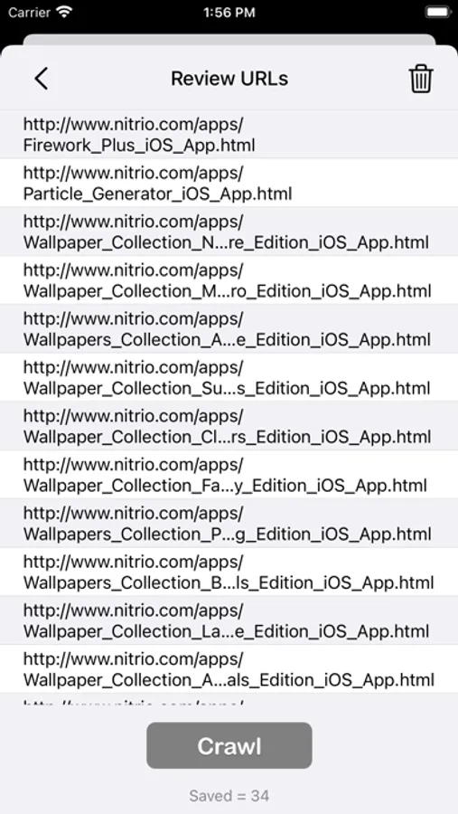 Images Crawler is a simple app that lets you capture all images on any website url given. Just input the website URL and tap on load will crawl the entire images within the website. You can review the URLs before deep crawl are set to grab all the images within the web page.