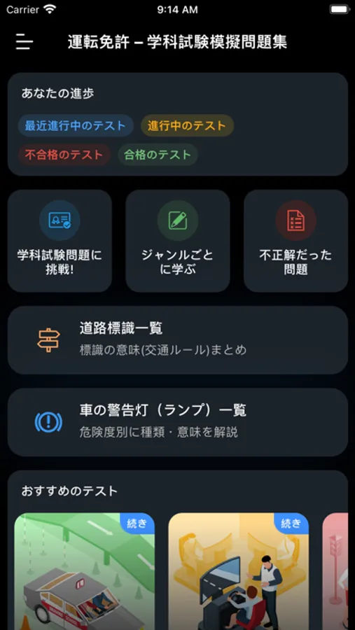 初めて学ぶ人にも分かりやすく、全問題ポイント解説付き。このアプリなら、文章題だけでなく、道路標識やイラスト問題も出題されます。