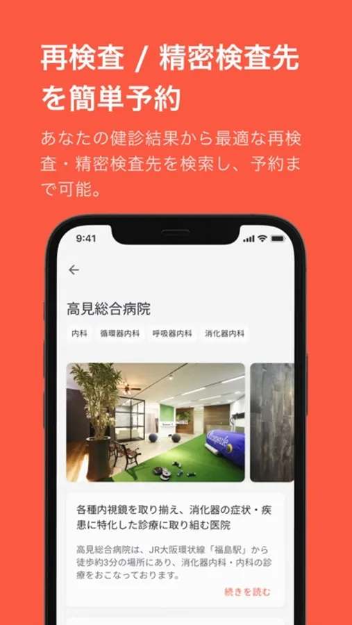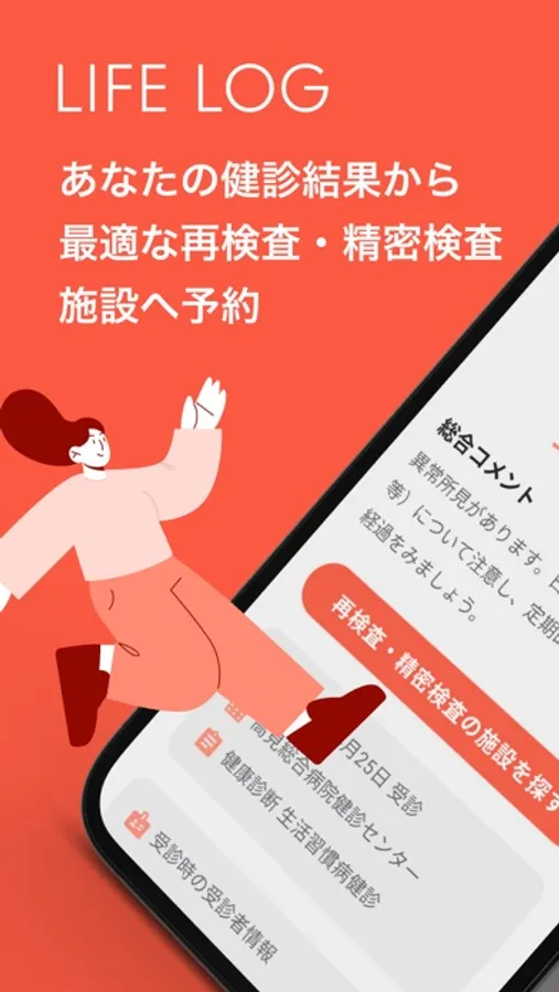 LIFELOGは、あなたの健診結果やエリアの希望をもとに、今あなたが行くべき最適な医療機関を検索し、予約をすることが可能です。