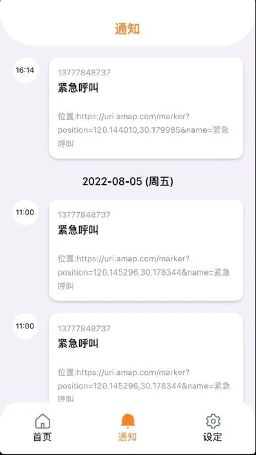 4.一键发送包含位置信息的sos求救信号(短信、语音、APP内部通知)