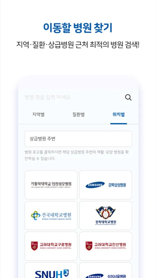 ■ 수도권 주요 상급병원 주변 재활병원 검색, 최적의 매칭 careyou 시스템