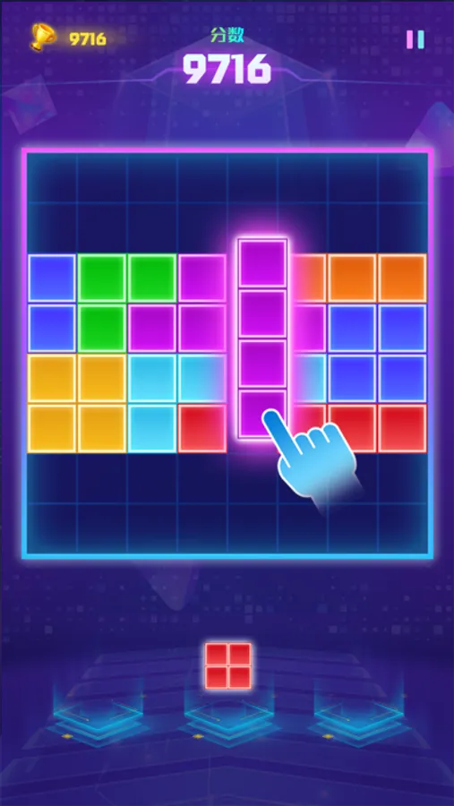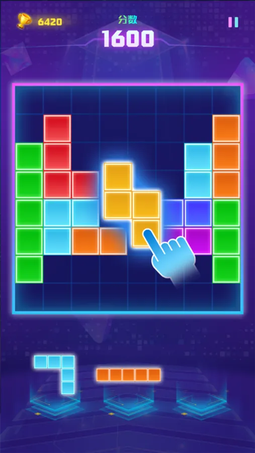-The sliding finger is placed on the grid at will according to the shape of the block. When the block is connected into vertical or horizontal lines, it can be eliminated.