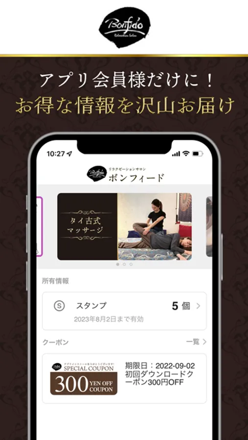 アプリ限定のダウンロード特典などお得なクーポンも定期的に配信します。