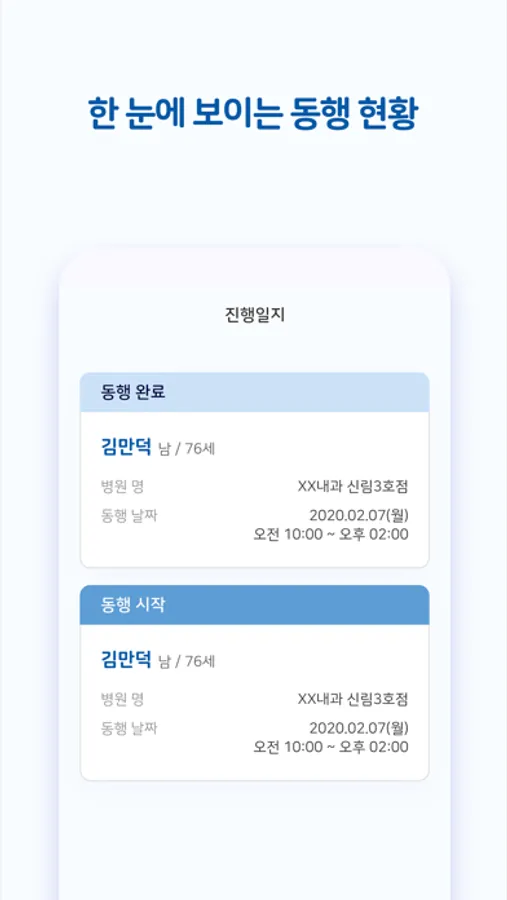 ⊙ 병원 동행 서비스 진행 사항을 실시간으로 확인 가능