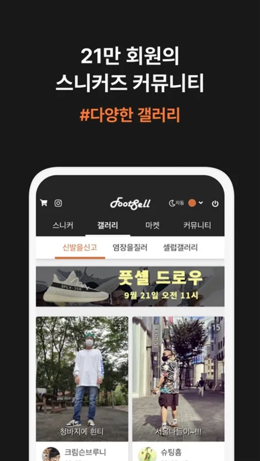 2004년 첫 선을 보인 오리지널 스니커 커뮤니티 풋셀을 이제 앱으로 만나보세요.